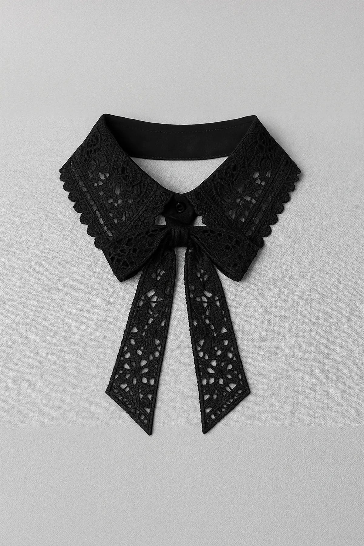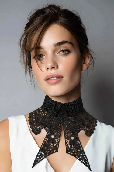 Fiyonk Detaylı Geniş Güpür Takma Yaka - Siyah