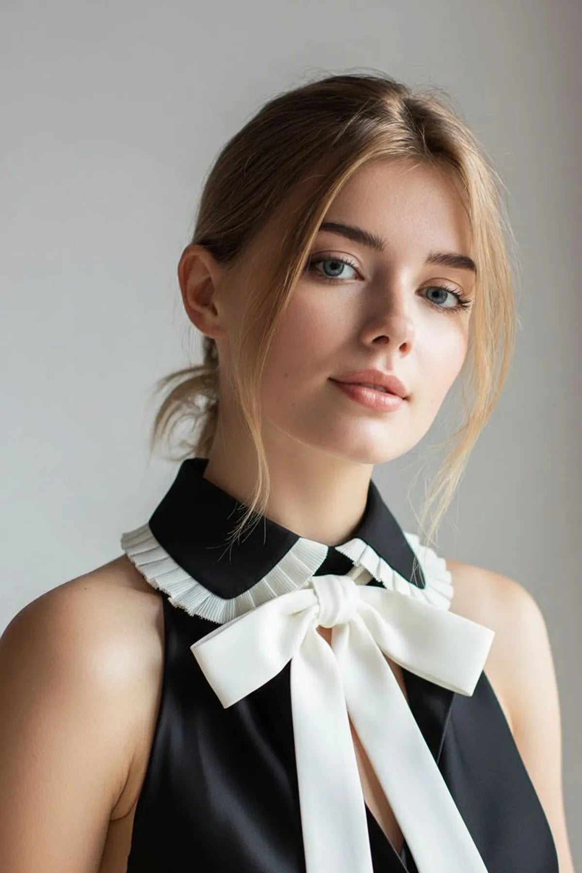 Kurdeleli Takma Yaka - Siyah Beyaz