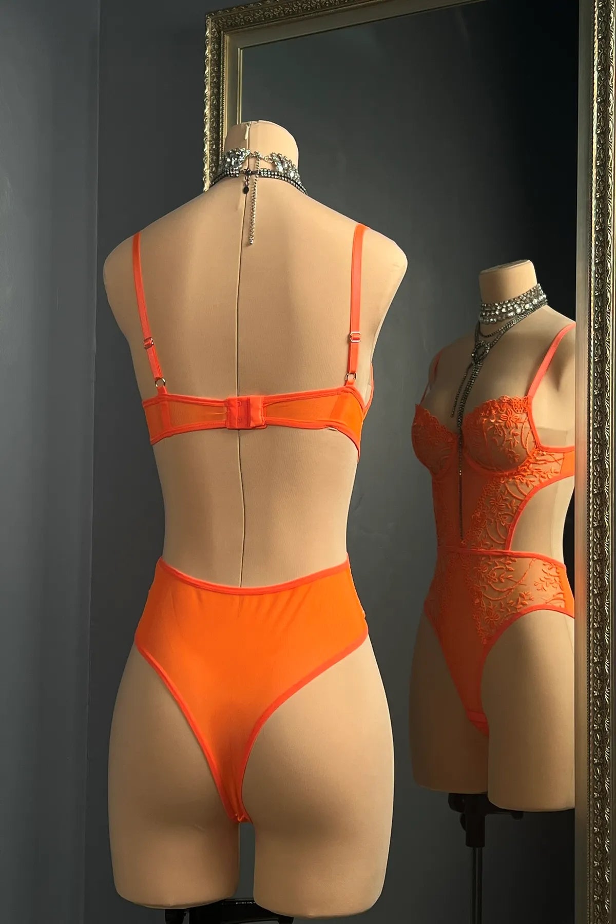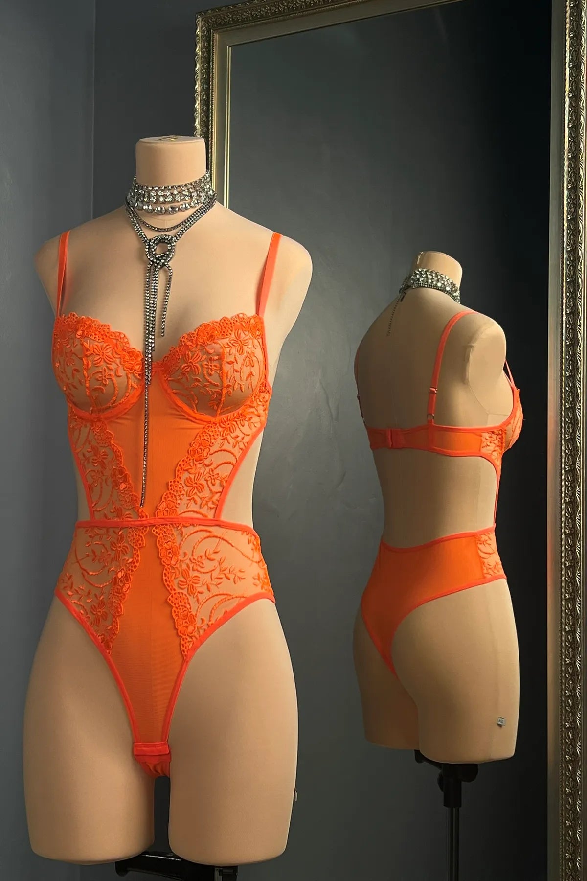 Tangerine Spark - Neon Turuncu Dantelli Bodysuit