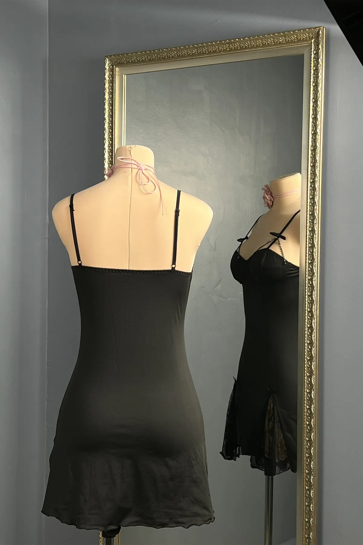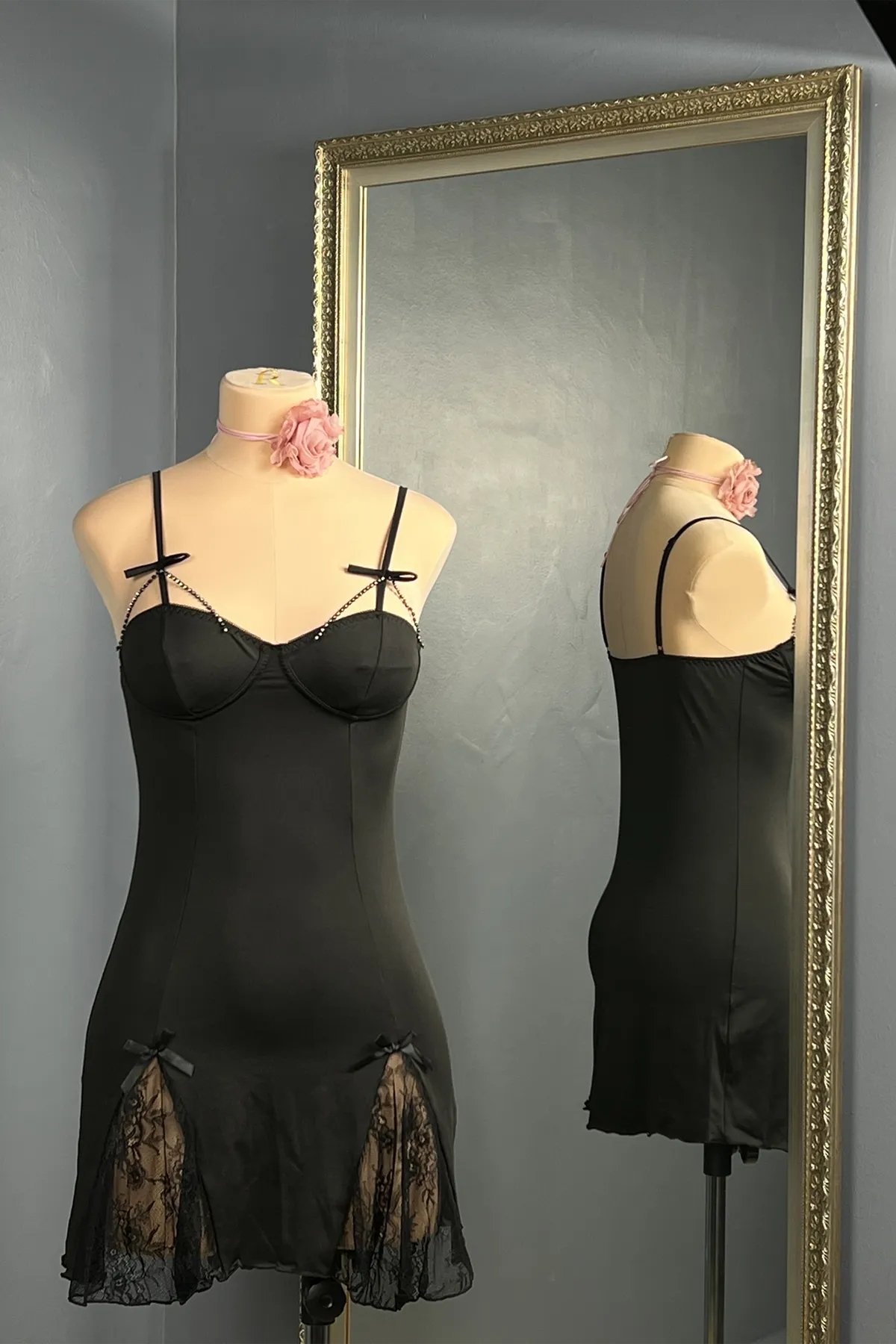 Elegant Noir – Siyah dantel detaylı, şık askılı gecelik. Zarif tasarımıyla özel anlar için mükemmel bir seçim.
