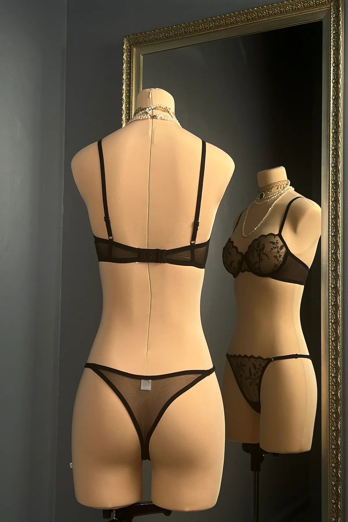 Siyahın zamansız çekiciliğini ince nakışlarla buluşturan bu set, sade bir şıklığın en zarif hâlini sunar. Hafif transparan dokusu ve ince hatlarıyla hem elegan hem de modern bir silüet oluşturur.