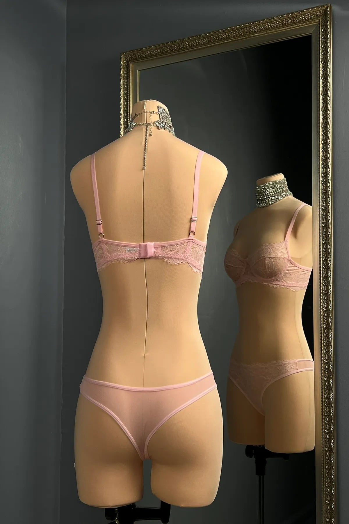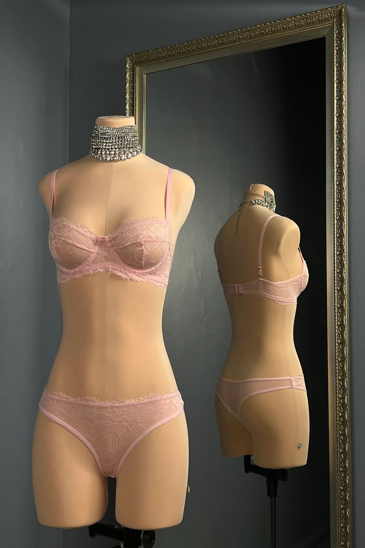 Pinky Glow - Balkon Kesim Sütyenli Pembe Dantel Set