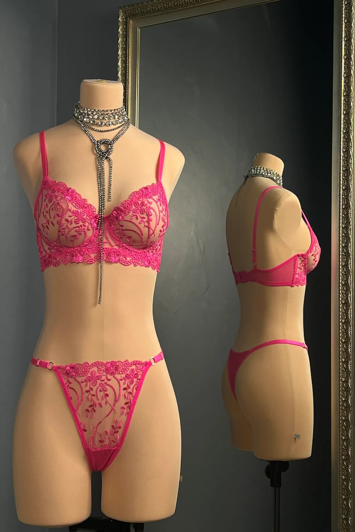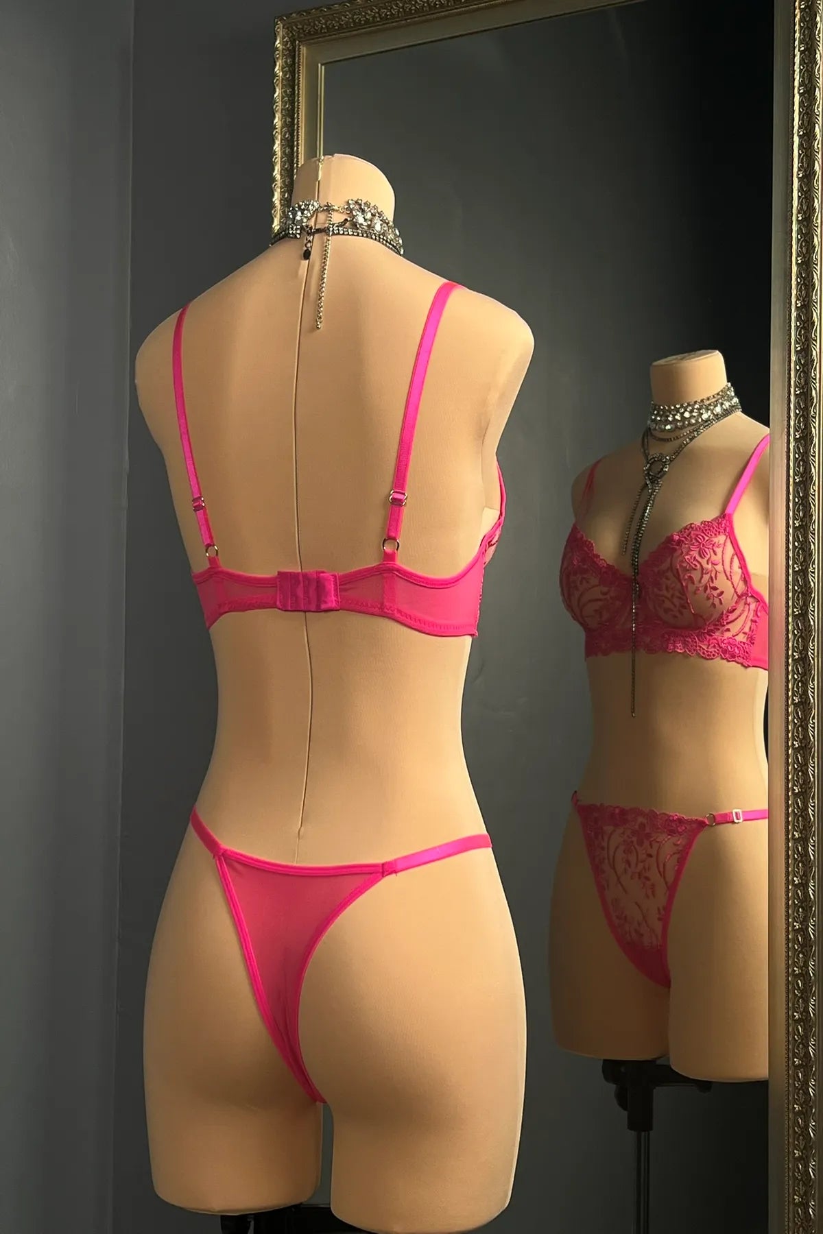 Glow Set Pink - Neon Pembe Dantelli İki Parçalı Takım