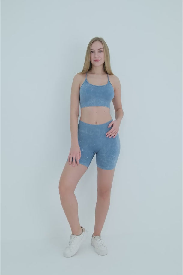 Stretchy Sky - Açık mavi spor set, dinamik ve sade bir kombin sunar.