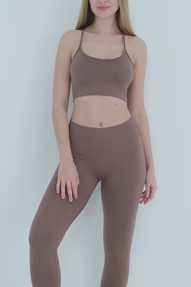 Stretchy Cream - Krem renkli bralet-tayt ikilisi, hafif dokusuyla rahatlık sunar.